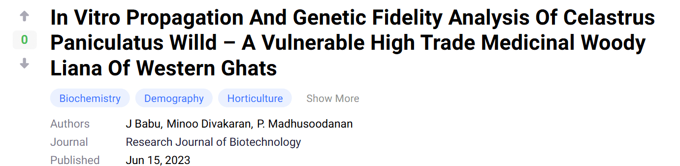 https://www.researchhub.com/paper/5750447/in-vitro-propagation-and-genetic-fidelity-analysis-of-celastrus-paniculatus-willd-a-vulnerable-high-trade-medicinal-woody-liana-of-western-ghats Gallery