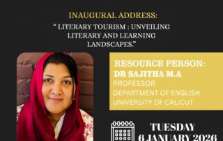 The activities of the English Association for the academic year 2025-26 were officially inaugurated by Prof. Sajitha M. A., Dept. of English, University of Calicut on 6th January 2026, with the key note address titled, “Literary Tourism: Unveiling Literary and Learning Landscape”. The University first rank holders of the previous BA and MA batches –Angel Theresa Biju and Agna K. T. respectively – and the VI rank holder of the BA batch—Divya Paul – were honored by the dept. during the event.