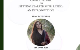 The Department of Mathematics and Statistics, organized a certificate Course titled “Getting Started with LaTeX: An Introduction” on 5th January 2026. The session was handled by the resource person Ms. Dona Alex, a dedicated Research Scholar at NIT Trichy. A total of 33 students attended the session