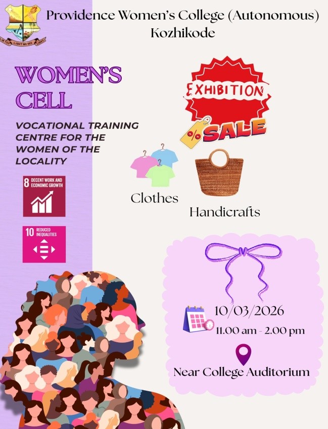 A vocational training Centre for women of the neighbourhood  functions under the Women’s cell of our college. An exhibition and sale of their products were put up on12-08-25 at the premises of the college auditorium. Principal Dr.Sr.Ashmitha AC  inaugurated the exhibition. Another exhibition and sale of the products of Women’s Cell was organised in connection with the International Womens day on 10-3-26.