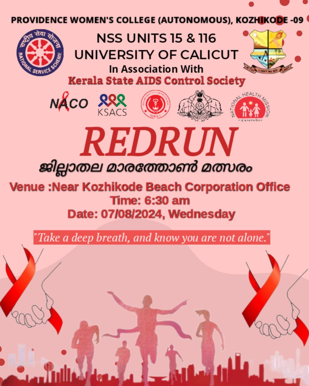 In connection with Eye Donation Fortnight, NSS Units of Providence Women's College Kozhikode in associarion with Dr Agarwals Eye Hospital Calicut organized a Walkathon at Mananchira Kozhikode.The event was flagged off by the chief guest, Adv. Praveen Kumar, DCC President of Calicut. 210 NSS volunteers participated in the program.