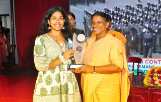 NSS Volunteer Ms. Amrutha Krishna receiving the honour from the Provincial Superior Sr. Jessina A C, for being selected for marching at Karthavyapath on the occasion of Republic Day Parade-2024 at Delhi