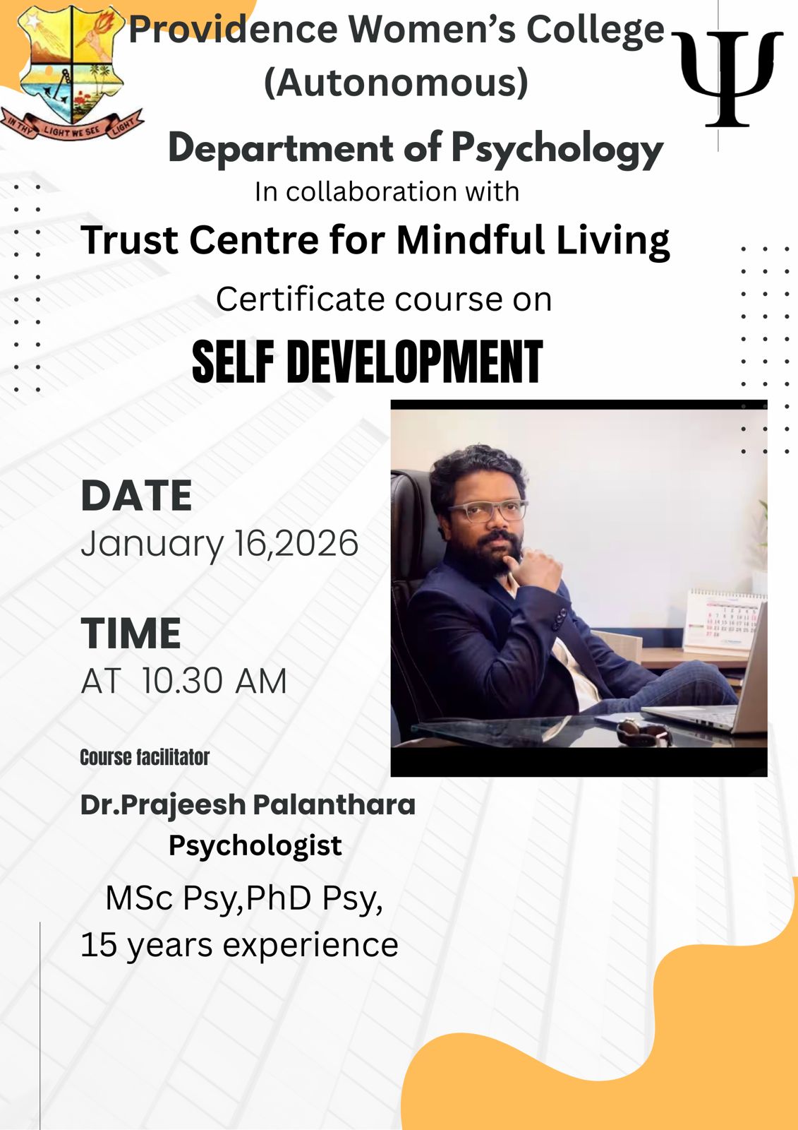 sitemanager2026-03-21T10:57:52+05:30An institutional visit was conducted on 12 March 2026 to the Composite Regional Centre for Skill Development, Rehabilitation and Empowerment of Persons with Disabilities (CRC), located at Chevayur, Kozhikode. A total of 14 first year and 8 second year psychology students participated in the visit. The centre functions under the Department of Empowerment of Persons with Disabilities and provides services related to rehabilitation, skill development, and empowerment of persons with disabilities. The visit helped students gain practical knowledge about rehabilitation services and the multidisciplinary support provided to individuals with disabilities.