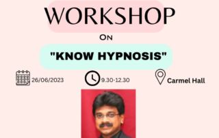 27 06, 2023 Workshop on “Know Hypnosis” – Dept of Psychology Gallery Workshop on “Know Hypnosis” – Dept of Psychology sitemanager2023-06-27T18:16:15+05:30 Workshop on “Know Hypnosis” – Dept of Psychologysitemanager2023-06-27T18:16:15+05:30
