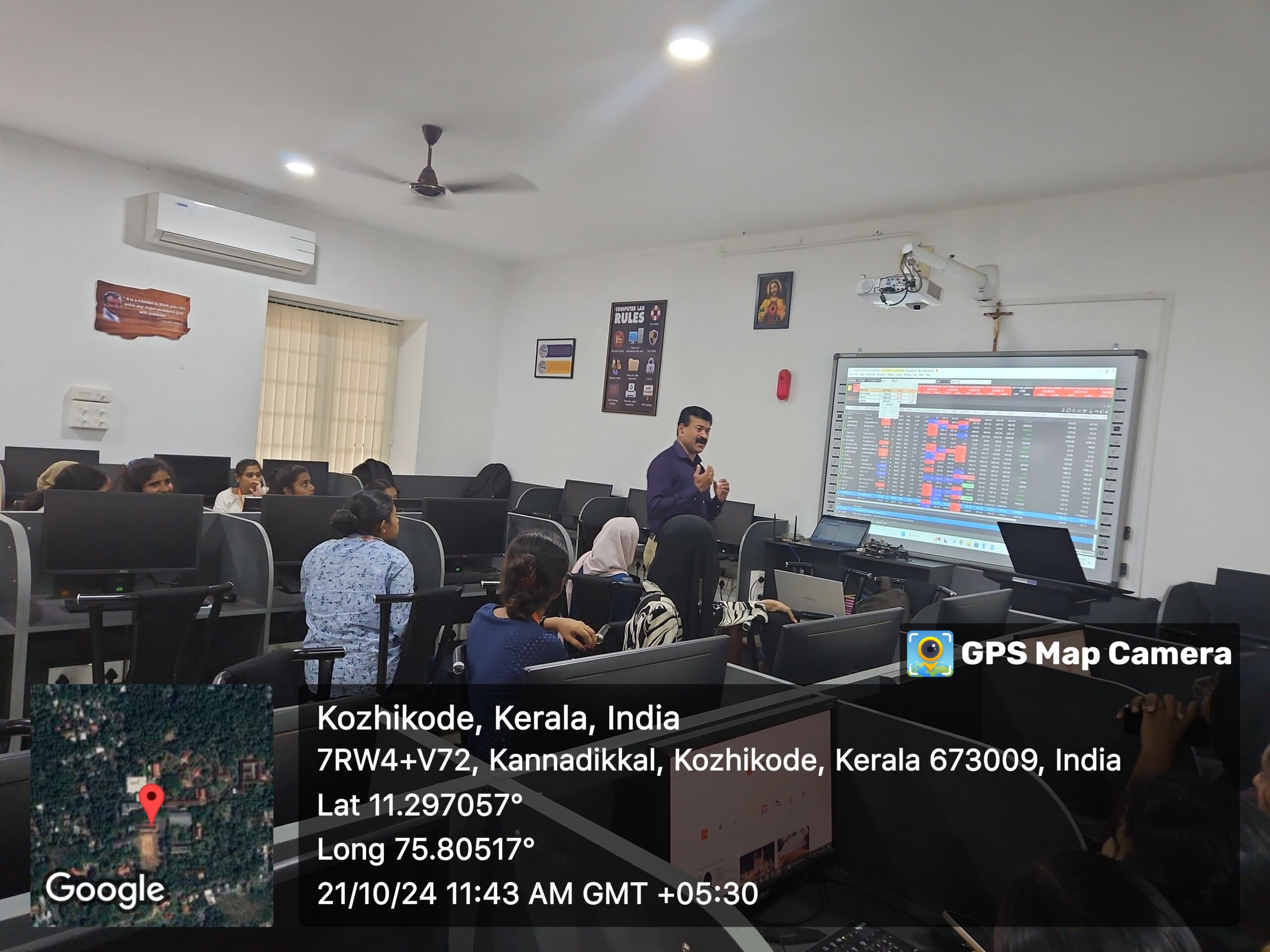 On 21st of october 2024, a Demat account opening and a live online trading session was organised by the department of Economics in the multimedia lab of the college. The session was handled by Mr. Binu Joseph ,vice president ,Vertex securities ltd. Cochin.