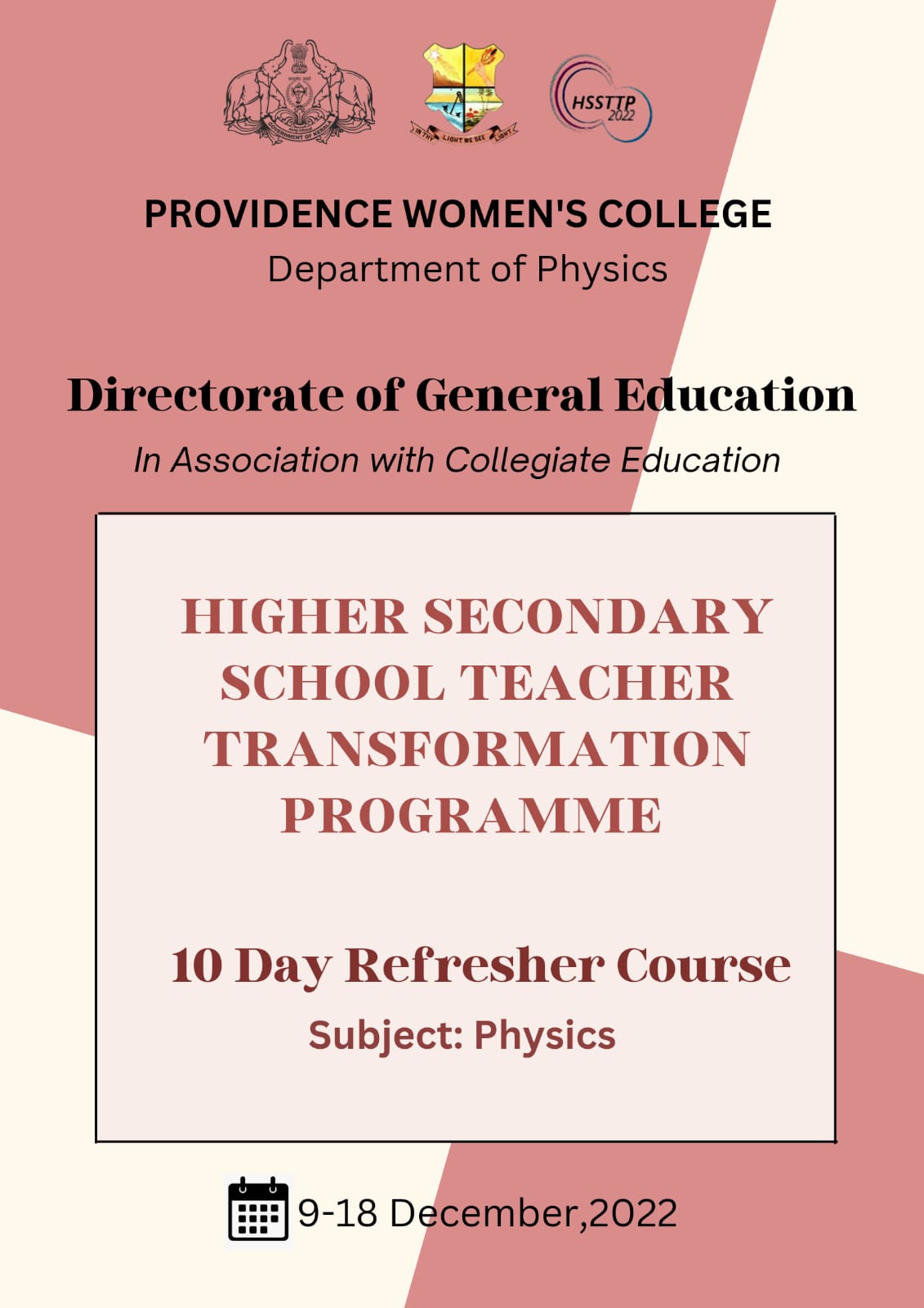 Higher Secondary School Teacher Transformation Programme- 10 Day Refresher Course Subject: Physics – Dept of Physics