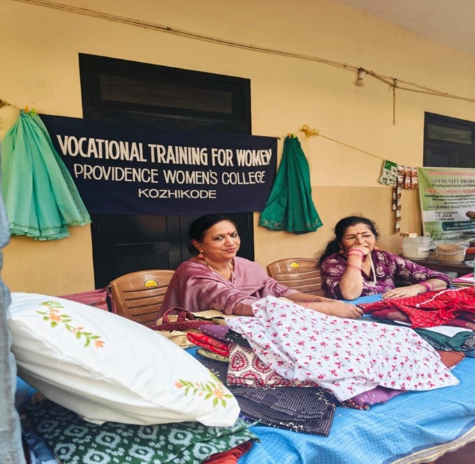 A vocational training Centre for women of the neighbourhood functions under the Women’s cell of our college. An exhibition and sale of their products were put up on12-08-25 at the premises of the college auditorium. Principal Dr.Sr.Ashmitha AC inaugurated the exhibition.
