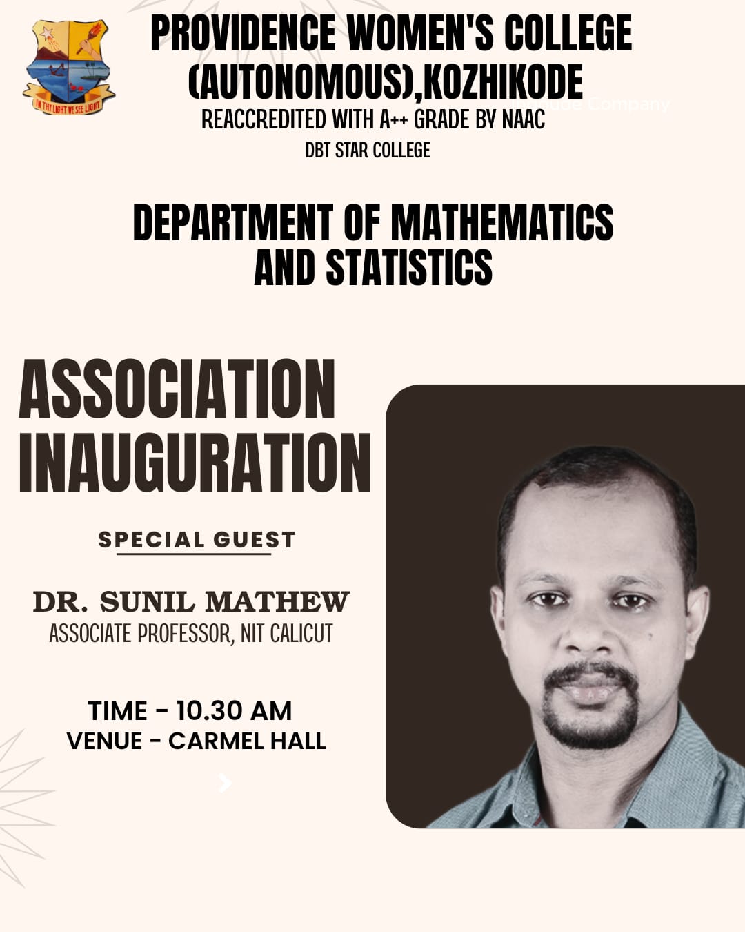 The Department of Mathematics and Statistics organized the Association Inauguration and National Seminar on 5 February 2026 at 10:00 AM in Carmel Hall. The programme was inaugurated by the Chief Guest, Dr. Sunil Mathew, Associate Professor and Head of the Department of Mathematics, National Institute of Technology Calicut. As part of the event, Dr. Sunil Mathew delivered a session on Universal Mathematics .A total of 85 students from UG and PG attended the session.