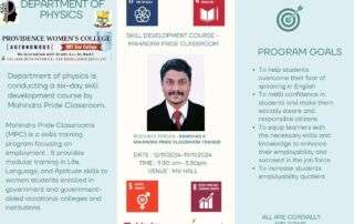 Six day Skill Development course by Mahindra Pride Class Room – Dept. of Physics