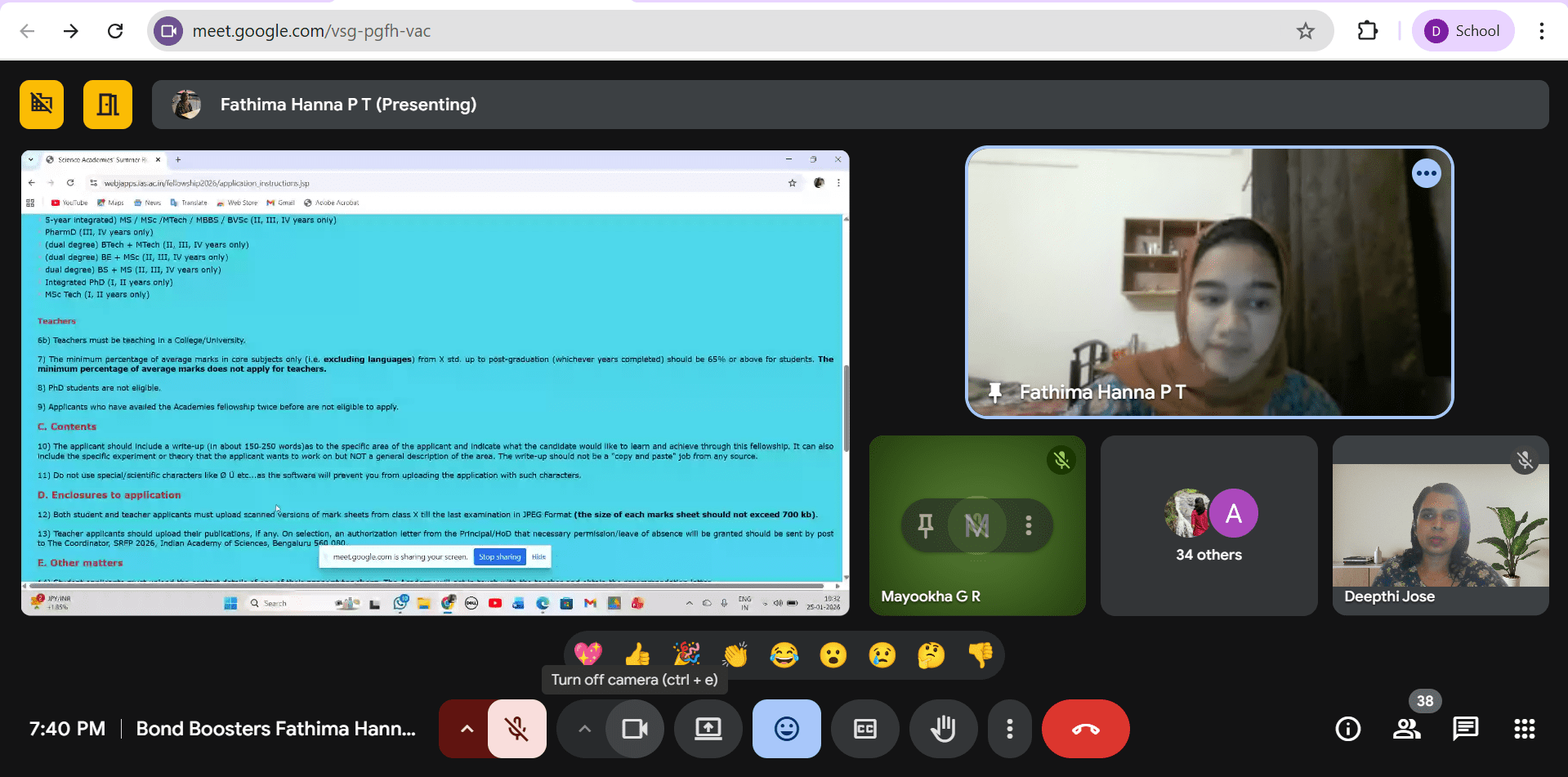 The Department of Chemistry organised an online interactive Bond Booster Programme on 25.01.26 at 7:30 PM. The resource person was our alumna Fathima Hanna P.T. (2021–24 batch). She is currently pursuing her M.Sc. at Mahatma Gandhi University, Kottayam, and is undertaking her M.Sc. project at IISER Tirupati after receiving the IAS Fellowship. During the session, she shared her experiences with internships and fellowships and guided students on securing research opportunities. The programme was informative and motivating for the participants.