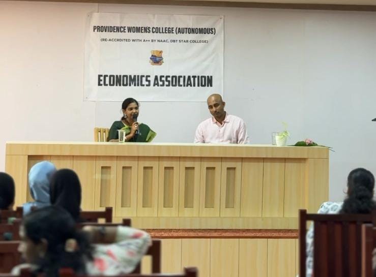 The Department of Economics organized a discourse titled “US Trade Policy: Tariffs and Its Impact” on 8th October 2025. The session was delivered by Prof. Vipin Veettil, Faculty of Economics, IIM Kozhikode, who offered valuable insights into global trade dynamics and policy implications.