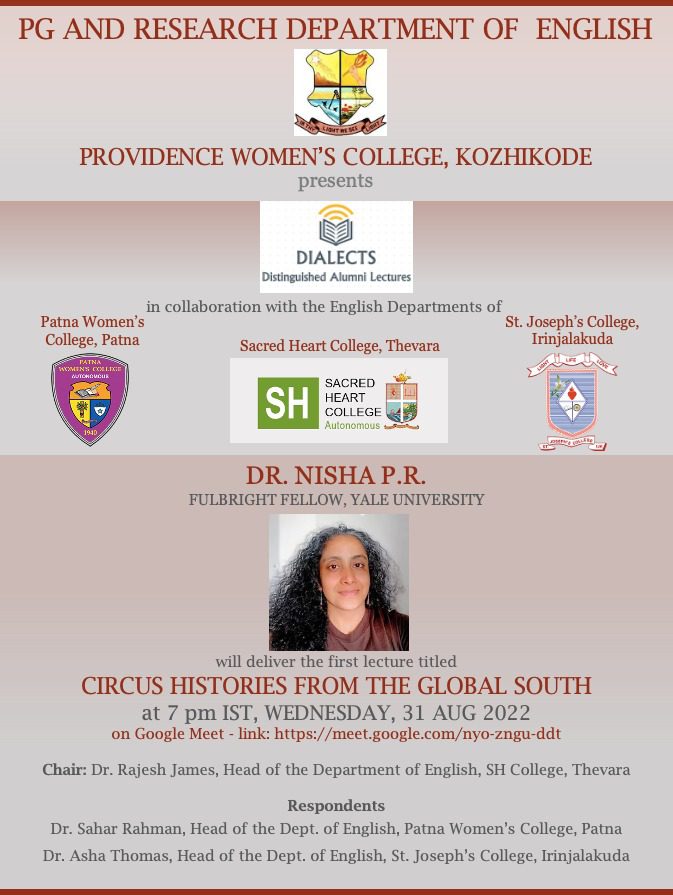 DIALECTS Distinguished Alumni Lectures – in collaboration with the English Departments of Patna Women’s College Patna, Sacred Heart College Thevara and St. Joseph’s College Irinjalakuda