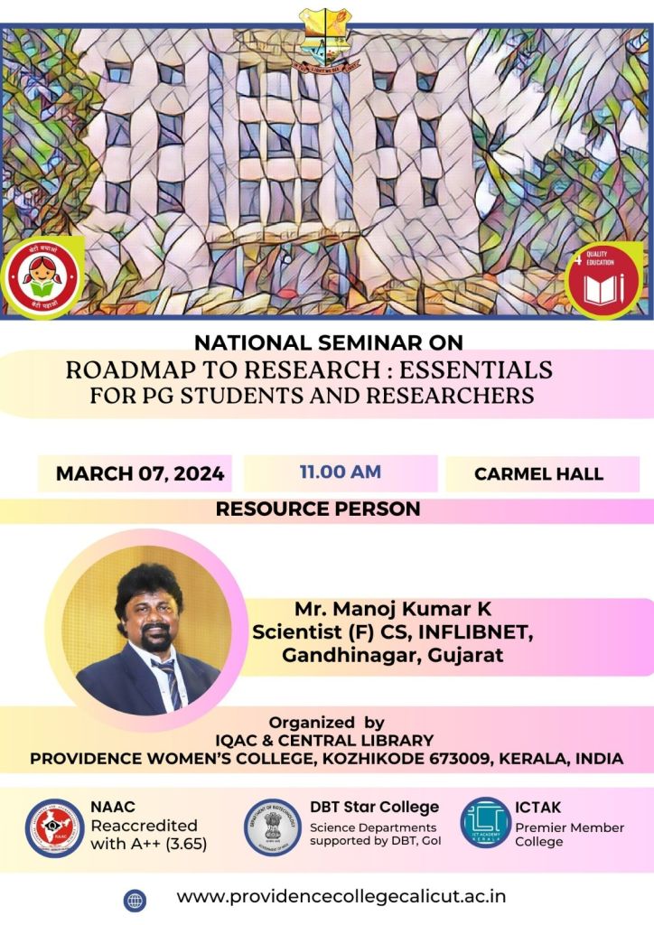 National Seminar on Roadmap to Research:Essentials For PG Students and Researchers -IQAC & Central Library