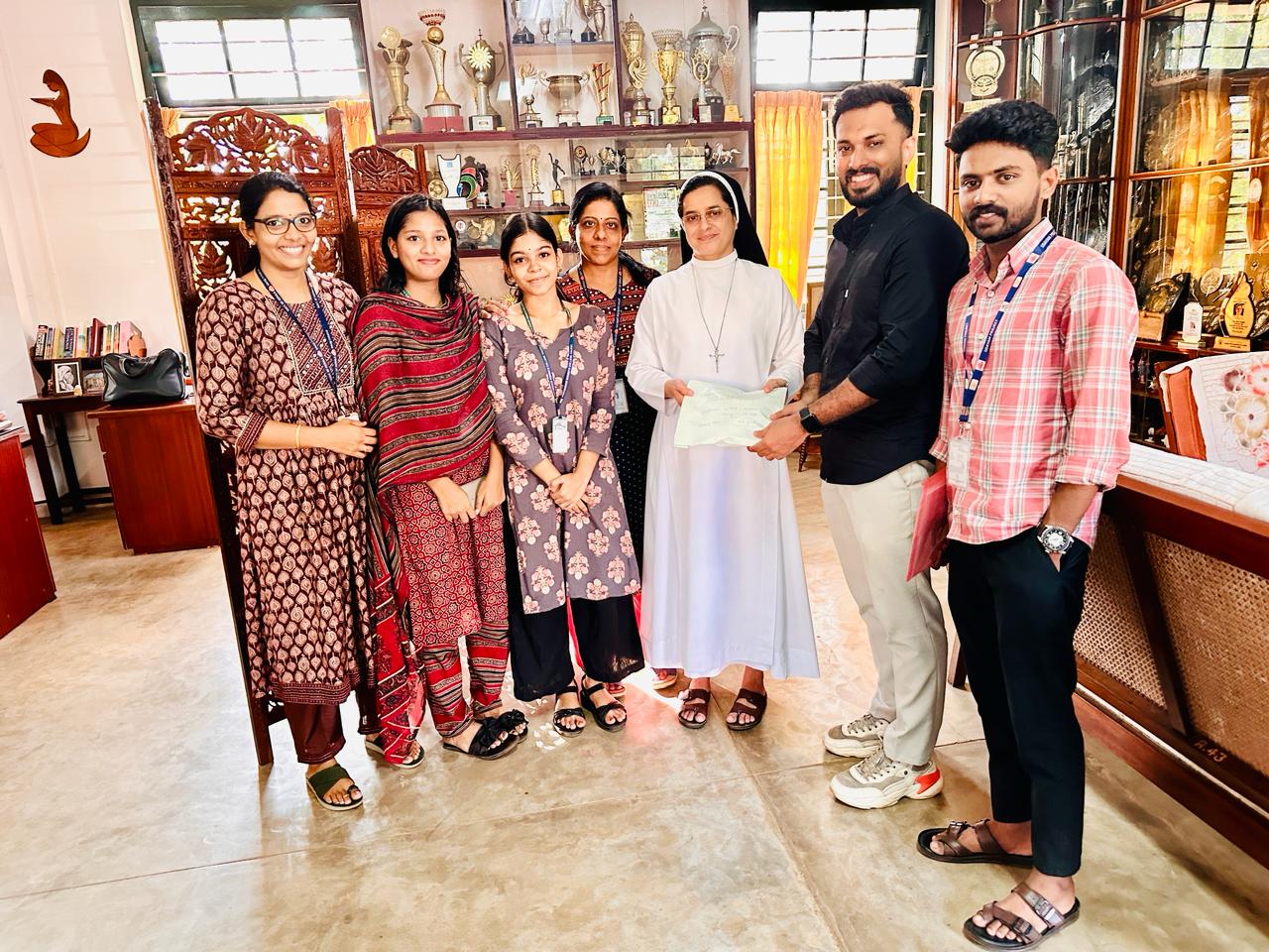 NSS units പ്രൊവിഡൻസ് വിമൻസ് കോളേജ് കോഴിക്കോട് ഉദയം പ്രൊജക്റ്റ്ലേക്ക് കലക്ട് ചെയ്ത തുക Rs 50,800/- കൈമാറുന്നു .. പ്രിൻസിപ്പൽ Dr Sr Ashmitha, NSS പ്രോഗ്രാം ഓഫീസർ Dr Archana E R., Dr Sangeetha G Kaimal NSS വോളന്റീർ Shika, Gayathri എന്നിവർ സമീപം ..