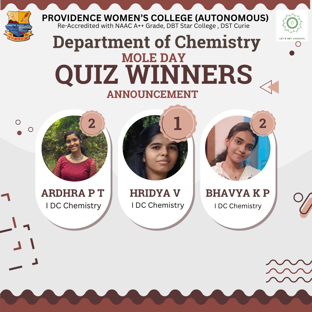 The department of Chemistry organised a quiz competition as a part of Moleday celebration on the 22nd October 2025 at Room No. 12. The theme of the quiz was ‘Guess the Scientist’, to honour the pioneers who contributed to the growth of Science. The quiz competition was a grand success with over 15 students participating in the program.