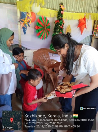 Students shared the joy of Onam and Christmas with the Children at the anganwadi at Nangariparamba.